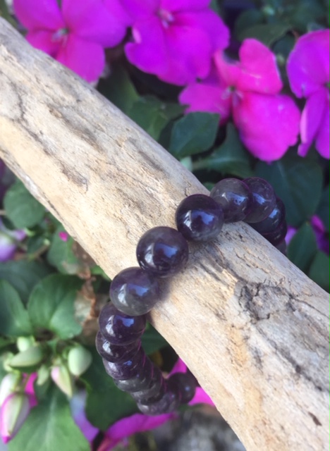 Bracelet sur élastique – 18 cm – en améthyste à dominante foncée – pierres brutes naturelles